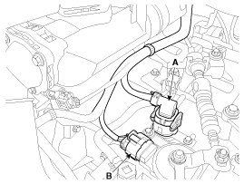 Disconnect the hose (B) after removing the automatic transaxle fluid cooler hose clamp (A).