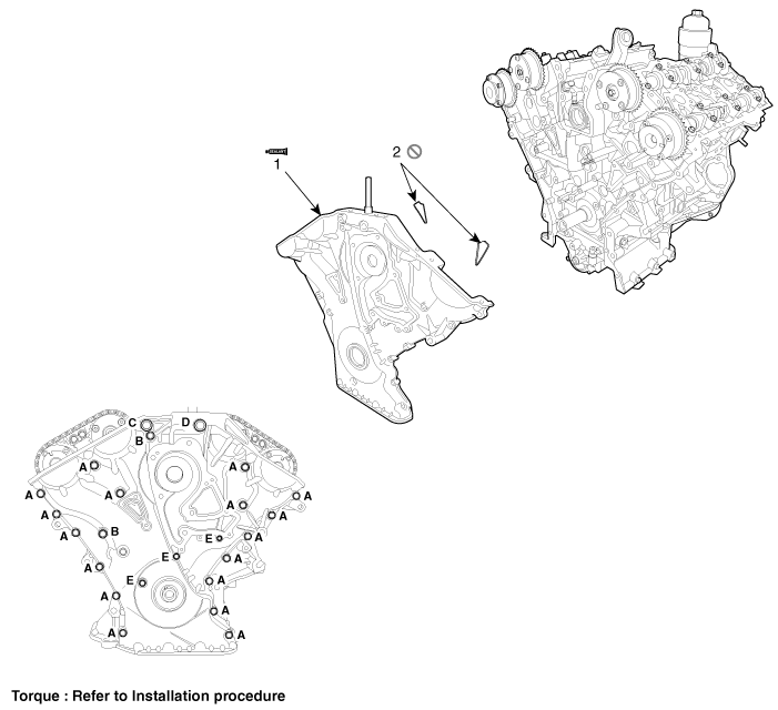 Hyundai Azera: Timing Chain Cover Components and Components Location - Timing System - Engine Mechanical System - Hyundai Azera 2011-2025 Service ManualHyundai Azera: Timing Chain Cover Components and Components Location