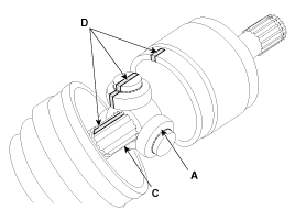 Wrap tape around the driveshaft spline(TJ) to prevent damage to the boot. |